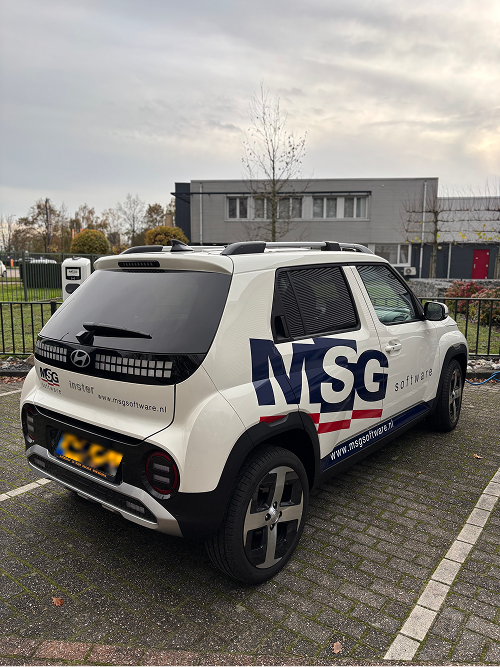 We hebben onlangs een nieuwe elektrische Hyundai Inster toegevoegd aan ons wagenpark en voorzien van onze herkenbare bedrijfsstickers.